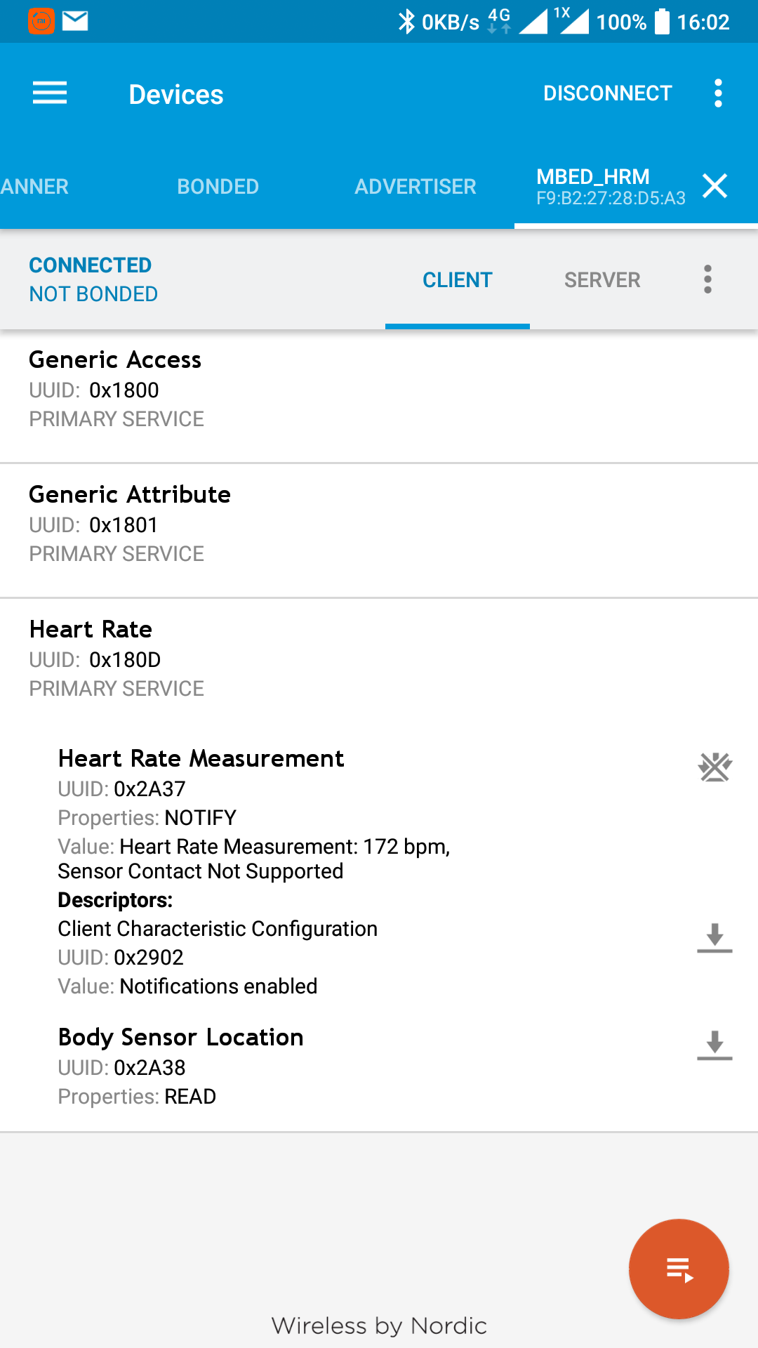 通过Nordic的BLE App,就可以看到心率了…… 170了,我要挂了.jpg